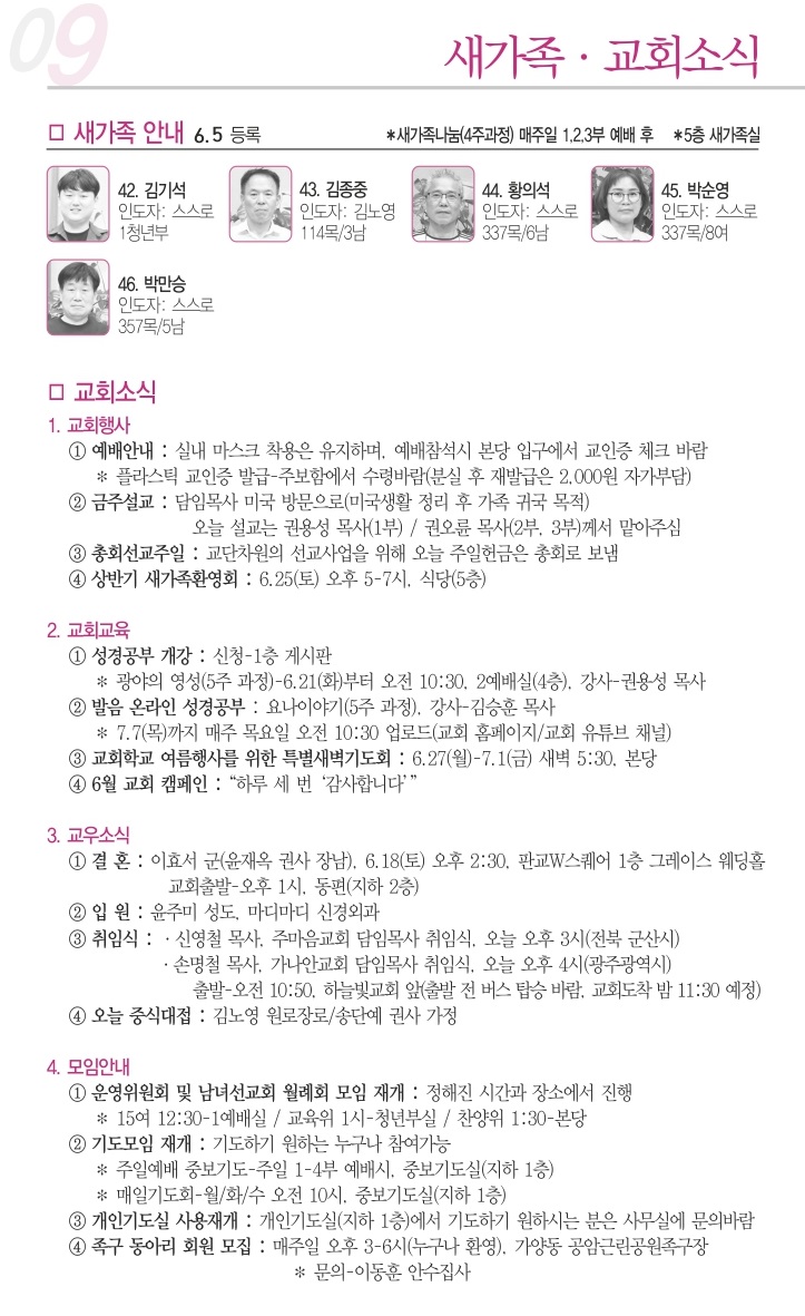 2022년 6월 12일 교회소식
