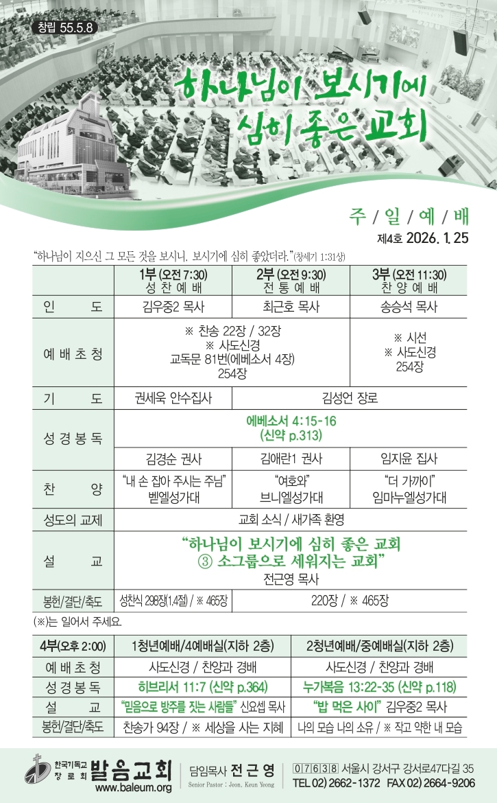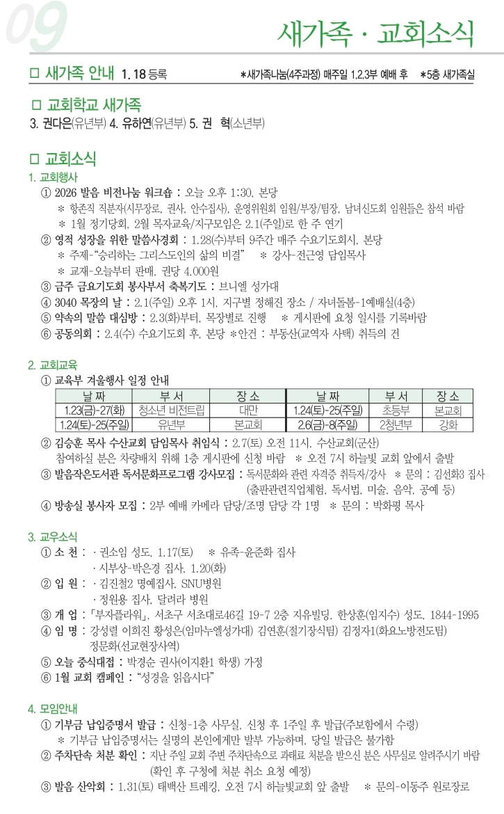 2026년 1월 25일 교회소식